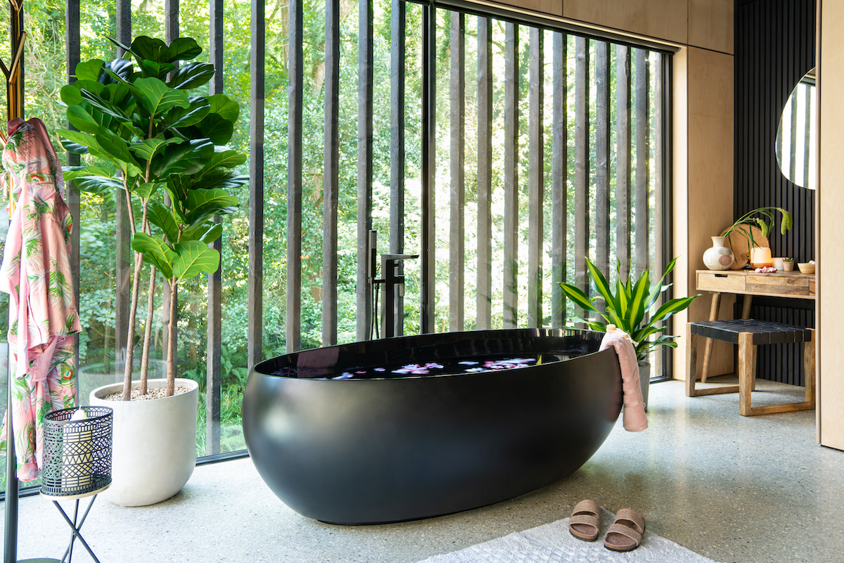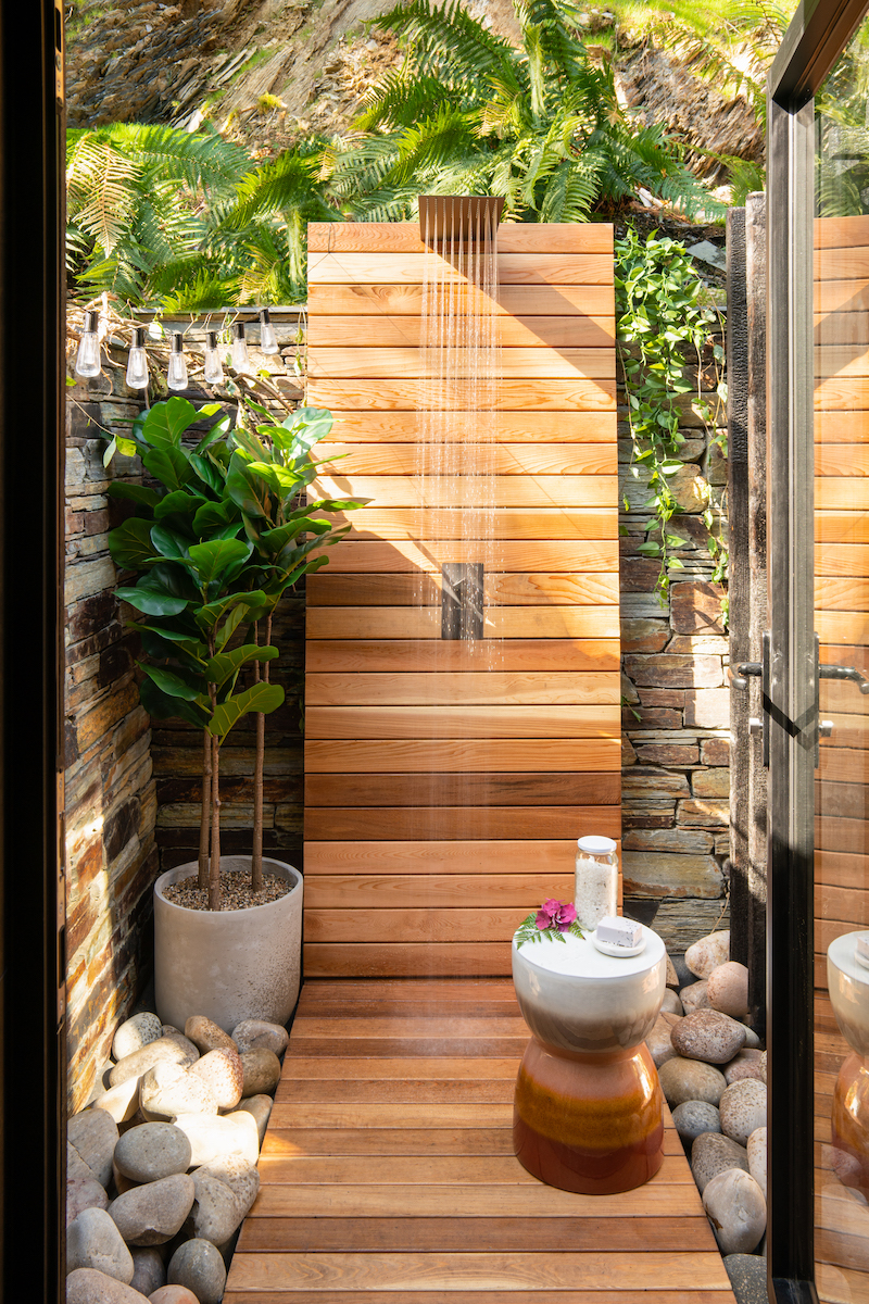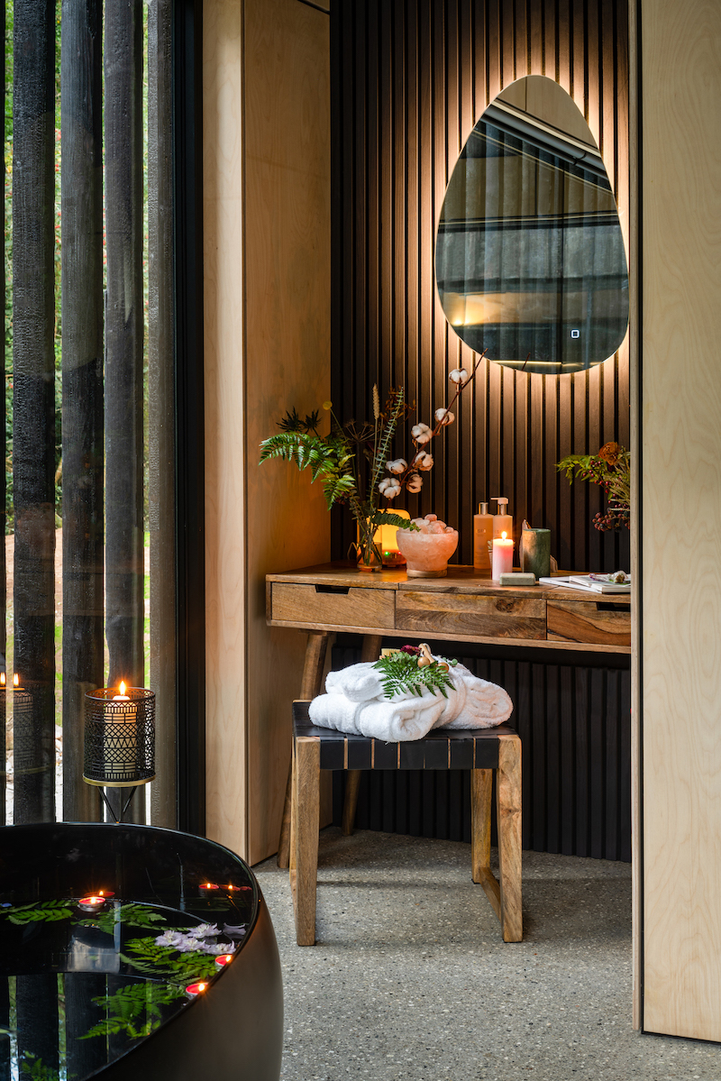 Inside, the Lodge blends comfort and style seamlessly. A fireplace warms the spacious living area, while a gourmet kitchen, spa-inspired bathrooms, and plush bedding ensure total relaxation. Reclaimed wood and stone add to the serene, earthy ambiance.